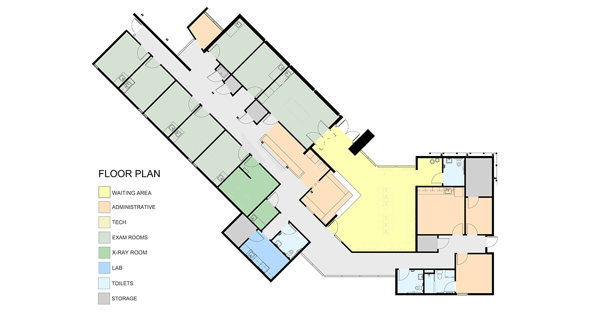 North Atlanta Urgent CareAfter having established a successful practice at their initial location, the clients wanted to create an iconic building for their second office that could be replicated moving forward as part of a “brand” identity. During the earliest stages of the project’s conception, the Nobel Prize for medicine was awarded to a group of researchers who had made ground breaking discoveries regarding the human genome. Inspired by these breakthroughs, Rutledge Alcock drew heavily upon themes of cellular structure and cell division during the initial stages of ideation. Programmatically, the new facility includes eight exam rooms, an X-ray room, a laboratory, as well as various support areas. |