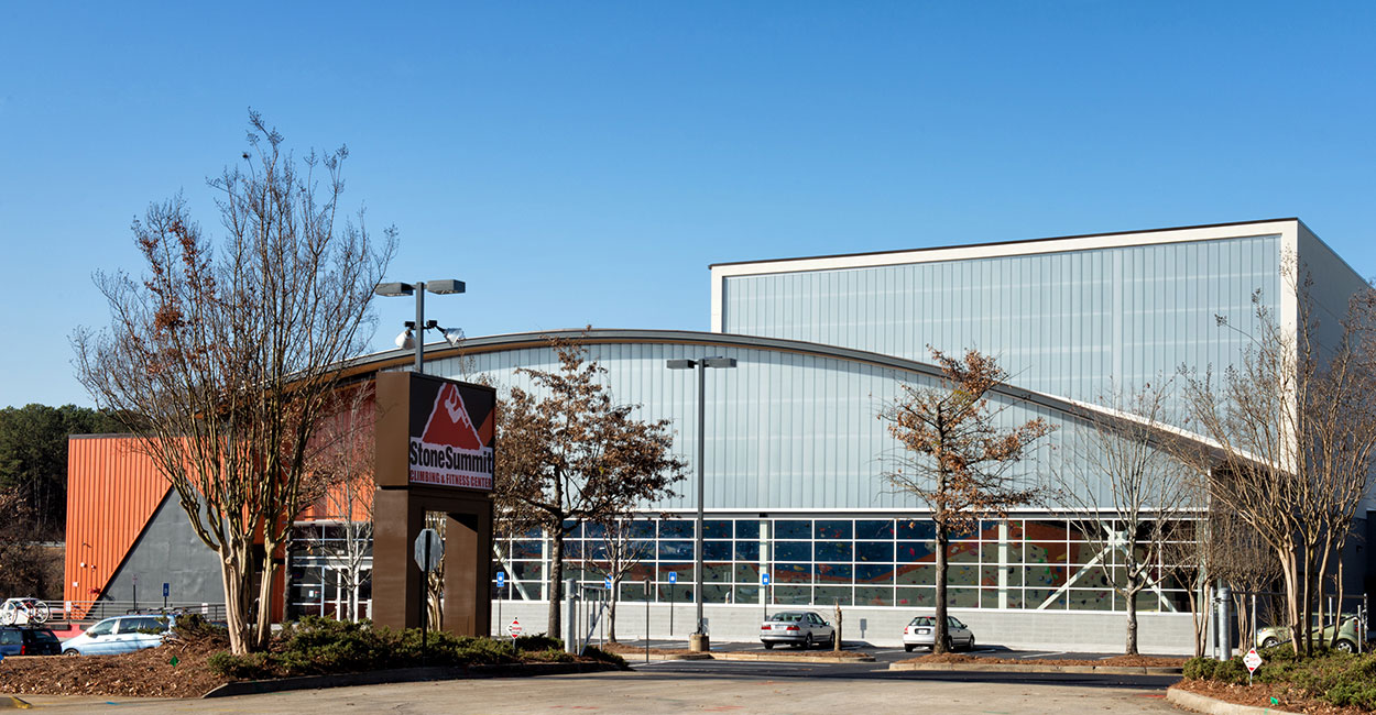 Stone SummitHaving outgrown the original location in Atlanta, Stone Summit was looking to expand but also create a world class climbing facility and build upon the success of the first location. The chosen site housed an abandoned Circuit City building that we originally were hoping to repurpose as much as possible. However the existing building condition and structural requirements to create a 55’-0” interior climbing wall limited what we could realistically utilize. Our design approach was simple; carefully sculpt the exterior to properly scale the large vertical requirements, allow targeted diffuse light to penetrate as much of the climbing arena as possible, develop a refined industrial aesthetic taking cue from climbing equipment (using a mixture of steel, wood, shipping containers, glass), layer the interior using solids & translucent barriers separating the various spaces. The project is currently under construction and is set to open in the fall of 2014. |